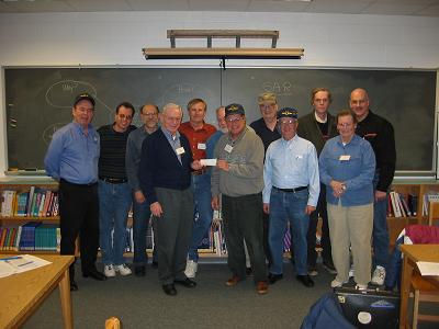 USUA Club 1 Treasurer Mike Moulds delivers a $500 check to USUA BOD Chairman Lew Clement and USUA Rich Pendergist. This is the first donation received by USUA to help decrease the organization's financial debt. Club 1 Members were on hand for the presentation.